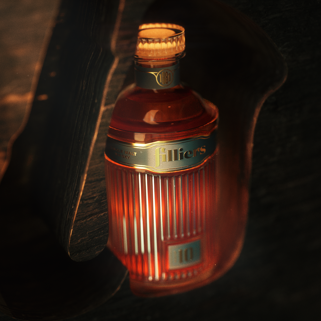 The goal was to create a set of frames focused on product visualization, using renowned drink brands as a playground to practice lighting through glass, label texture development, and product-focused composition and set design. The featured bottles: Little Rest, Filliers, The Sassenach, Egiazki, and Longbranch.